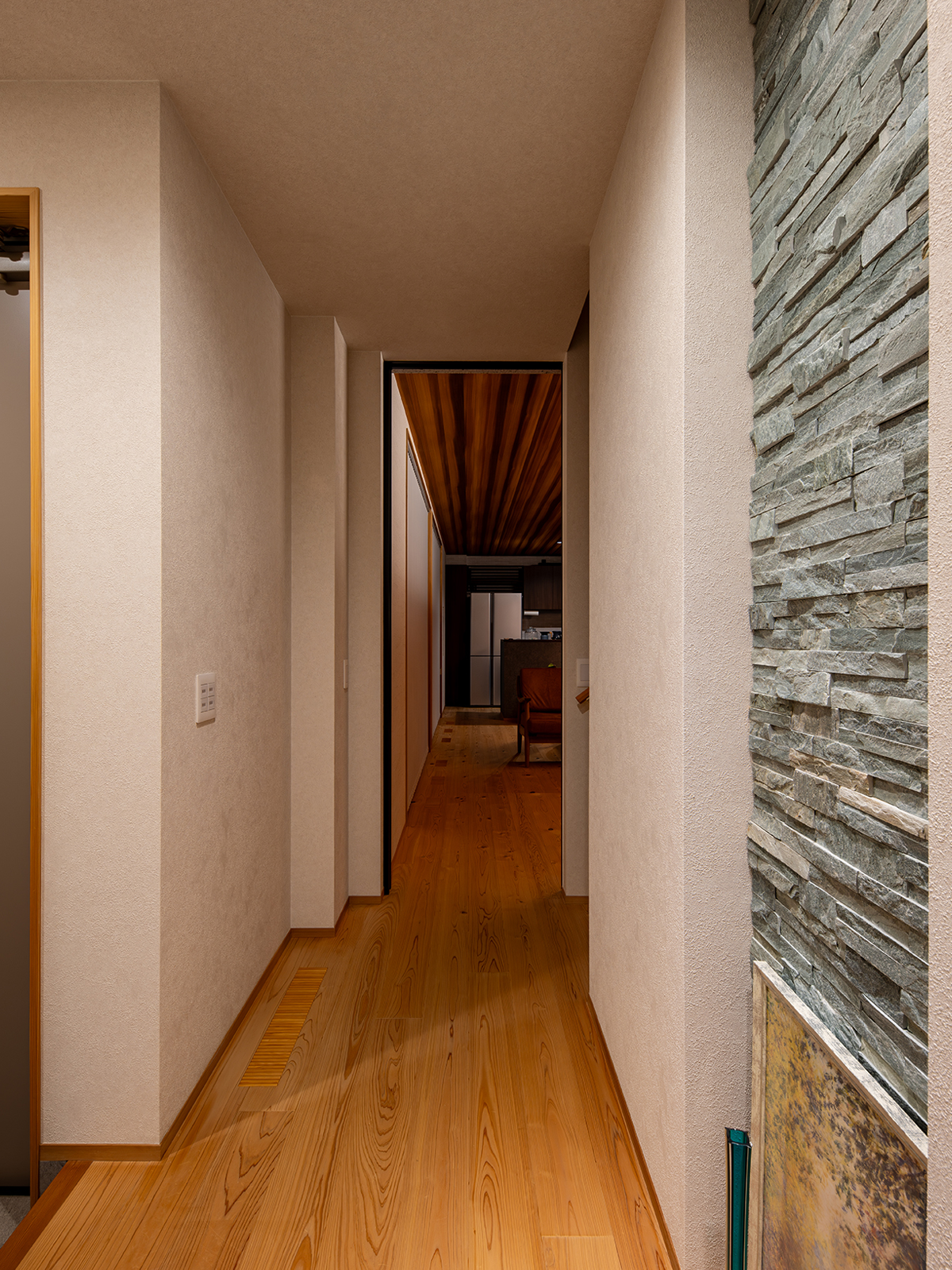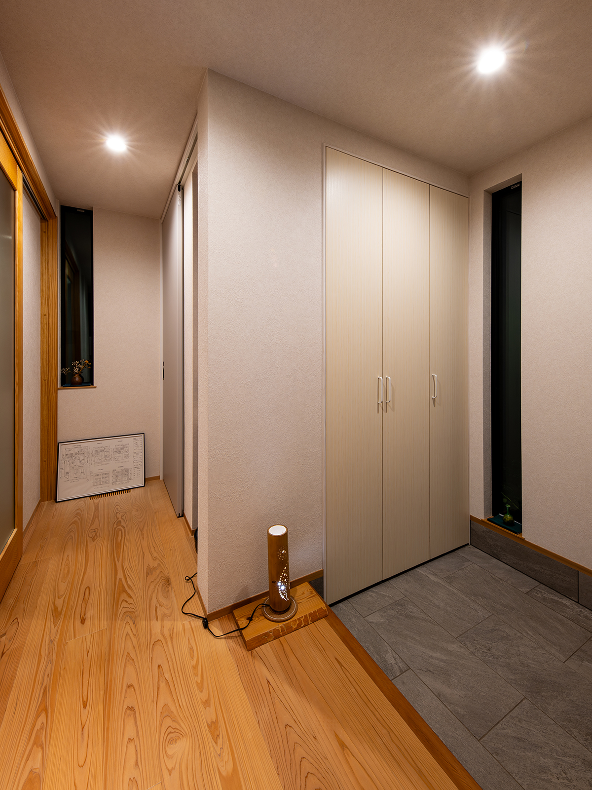 家族構成、生活リズム、これから先の変化まで一緒に想像しながら、「何を決めないか」を整理していったのです。そして、判断が必要な場面では、設計者として責任を引き受ける。その役割を、私たちが担いました。この住まいは、床下エアコンを採用しています。1階は廊下も洗面も玄関も帰ってきて玄関ドアを開けた瞬間から、空気が違うと感じられる暖かさです。